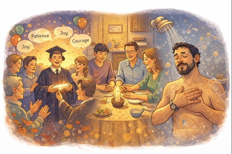 Artifact: a sealed envelope they open alone later that night: letters from key people answering: “What I hope you remember when you’re scared is…”